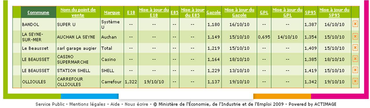Source prix des carburants: http://www.prix-carburants.gouv.f