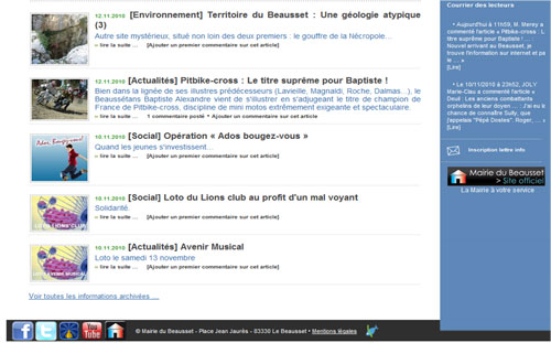 Il est mis à jour quotidiennement avec les nouvelles liées à l’actualité (récente serait-on tenté de préciser). Les événements à venir y sont présentés en détail et des comptes rendus des événements majeurs passés y sont relatés d’une façon tout aussi détaillée. On sent la touche du professionnel… La mairie, qui semble avoir (enfin) pris conscience de l’importance du « Faire savoir » et non pas seulement que du « Faire », s’est ainsi offert la collaboration avec un correspondant de presse local.