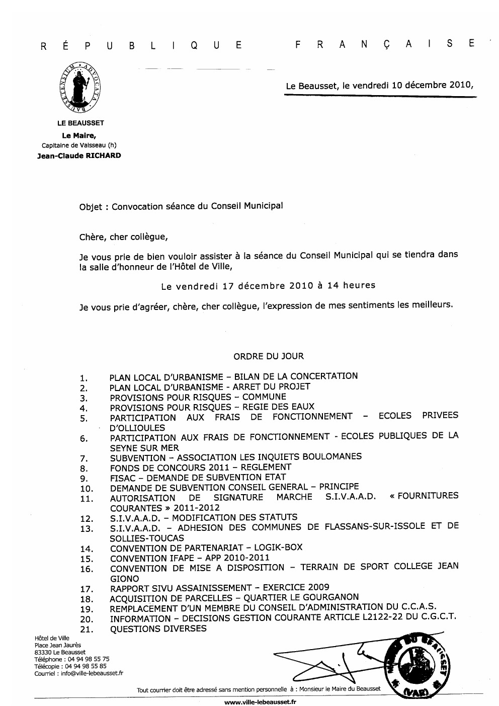 Le prochain conseil municipal aura lieu vendredi 17 décembre prochain et son thème principal portera sur le projet de PLU que la municipalité nous a présenté la semaine dernière.