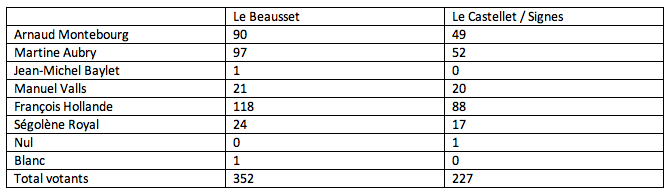 Résultats du 1er tour des primaires citoyennes, Le Beausset, Le Castellet, Signes, selon les informations transmises par Marie-Christine Oltrat Fenot