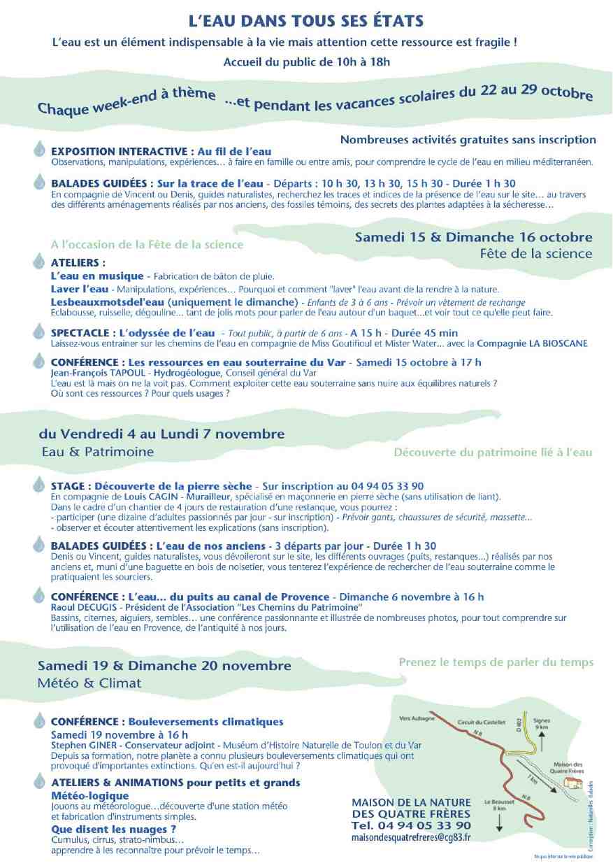 La Maison de la Nature des Quatre Frères vous propose « L’eau dans tous ses états »