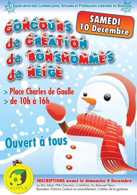 L’Association des Commerçants, Artisans, et Professions Libérales du Beausset (ACAPLB) organise dans le cadre de sa quinzaine commerciale de Noël, un concours de créations de bonshommes de neige.