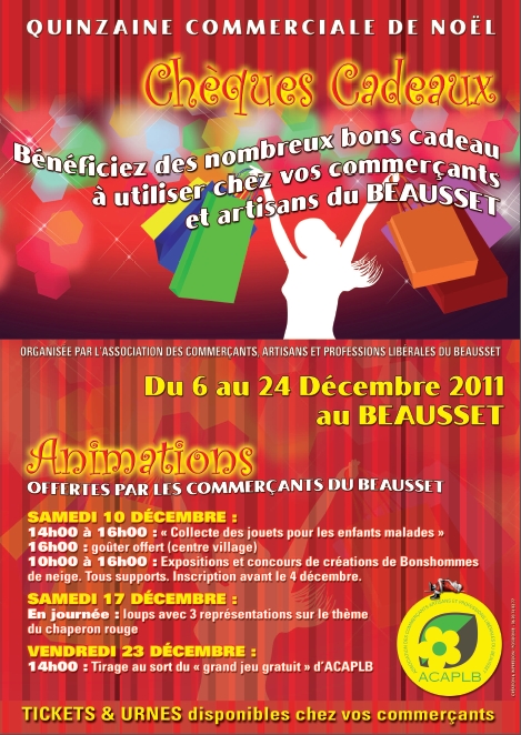 Nous signalons également les marchés de Noël qui seront organisés par certaines écoles du Beausset. Des créations des enfants (décoration de Noël, gâteaux, etc) seront vendues afin de financer des sorties scolaires en 2012.