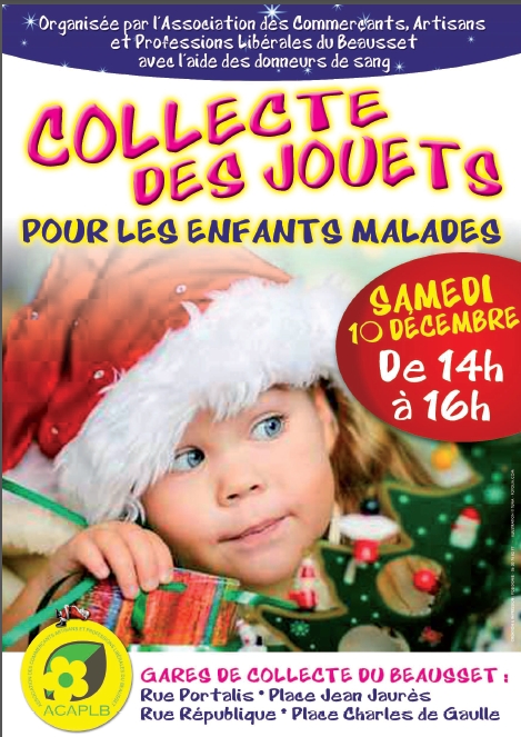 L’Association des Commerçants, Artisans, et Professions Libérales du Beausset organise comme chaque année une collecte de jouets pour les enfants malades, aidée par l’association des donneurs de sang et des anciens marins.