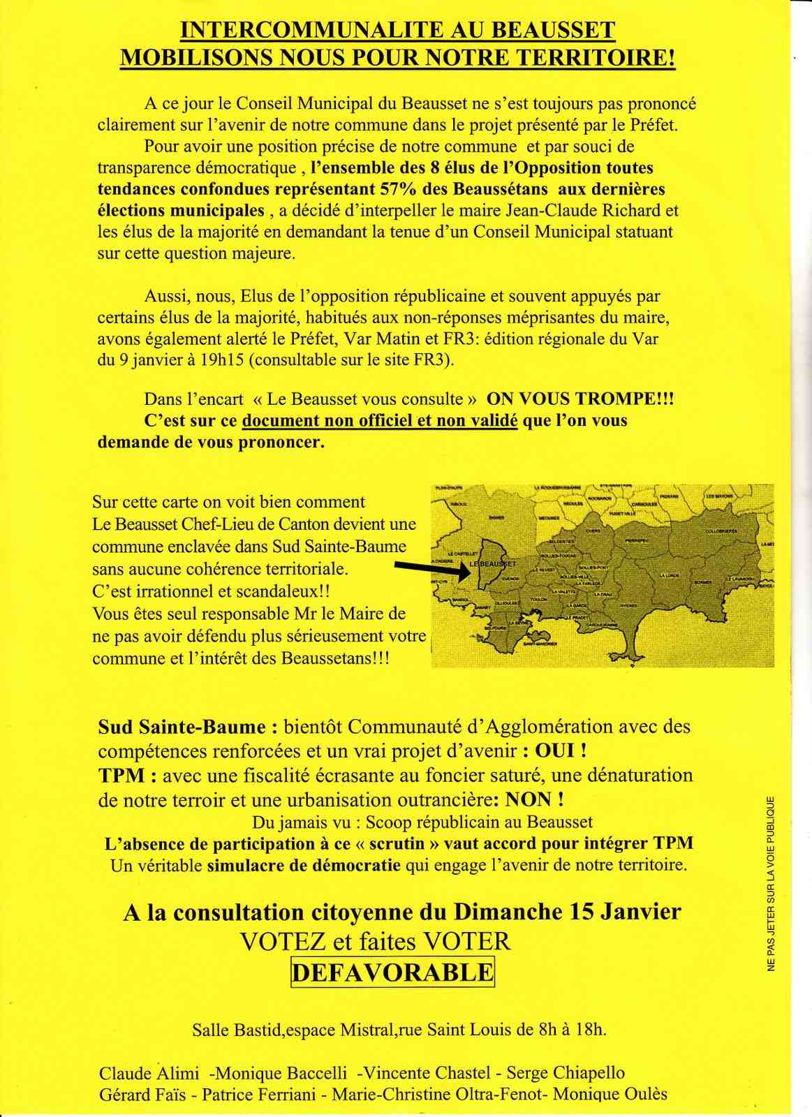 En effet, après l’interpellation du Maire, Jean-Claude Richard et du Préfet du Var par des lettres ouvertes ces derniers jours, les élus de l’opposition mobilisaient ce matin les Beaussétans par la distribution de tracts sur le marché.