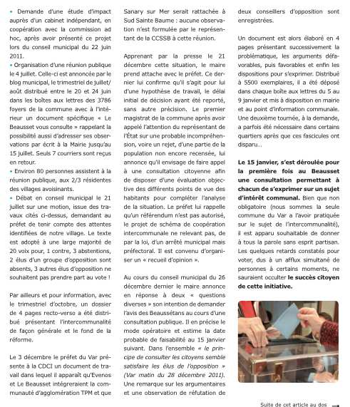 Un mois pratiquement après le recueil d’avis organisé par la municipalité sur le schéma intercommunal proposé par le préfet (voir ici et ici), voici que le maire fait publier dans le magazine Ensemble de février 2012 une nouvelle « mise au point ».
