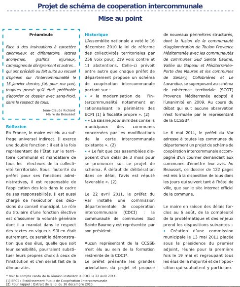COMMENTAIRES sur “La mise au point du maire sur le schéma de coopération intercommunale”
